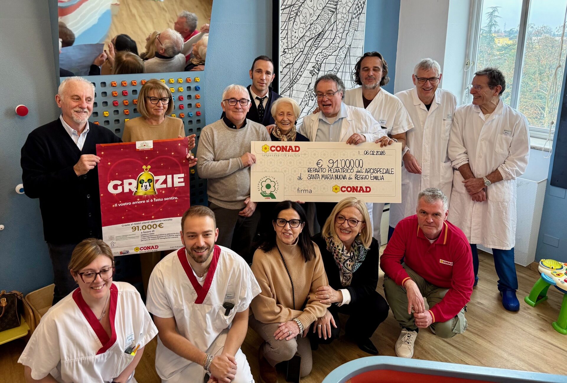 Conad Centro Nord ha devoluto 91.000 euro all’Arcispedale Santa Maria Nuova. È il risultato di quanto raccolto nel periodo natalizio dello scorso anno nei punti vendita Conad della provincia di Reggio Emilia a seguito dell’iniziativa “I gesti d’amore si fanno sentire“. Ciò è stato possibile grazie alla straordinaria generosità dei clienti Conad, che anche quest’anno hanno sostenuto l’iniziativa collezionando le campanelle di Natale, ispirate ai personaggi più amati dei film d’animazione Disney, una linea di 13 soggetti realizzati in plastica riciclata (ABS). Ogni 15 euro di spesa, con un 1.9 euro in più, i clienti Conad potevano ricevere una campanella di Natale e devolvere 50 centesimi in beneficenza.