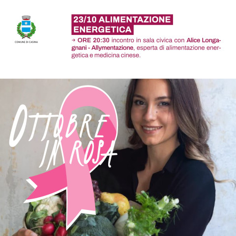 Giovedì, 23 ottobre, nella sala civica della Biblioteca di Casina (in via Marconi 7), alle 20.30 è stato organizzato l’incontro “Alimentazione energetica”, con l’intervento di Alice Longagnani, esperta di questo tema oltre che di medicina cinese.