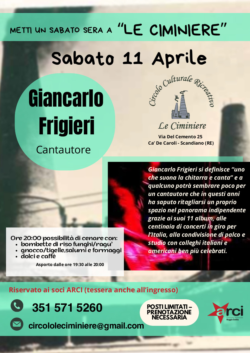«Giancarlo Frigieri si definisce “uno che suona la chitarra e canta” e a qualcuno potrà sembrare poco per un cantautore che in questi anni ha saputo ritagliarsi un proprio spazio nel panorama indipendente grazie ai suoi 11 album, alle centinaia di concerti in giro per l’Italia, alla condivisione di palco e studio con colleghi italiani e americani ben più celebrati», spiegano i promotori.