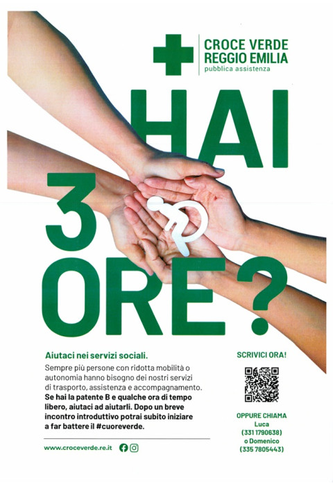 Sempre più persone con ridotta mobilità o autonomia hanno bisogno dei servizi di trasporto, assistenza e accompagnamento della Croce Verde di Reggio Emilia e Albinea. Ecco perché l’associazione, che ha sede a Reggio e una base anche ad Albinea, cerca volontari che possano guidare i mezzi di traporto persone.
