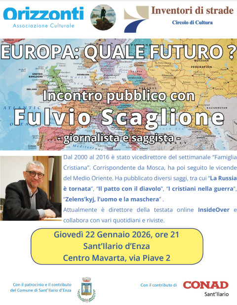 Si parla di attualità e di geopolitica, nell’incontro “Europa, quale futuro?” promosso dalle associazioni culturali Orizzonti e Inventori di strade a Sant’Ilario d’Enza col patrocinio del Comune.