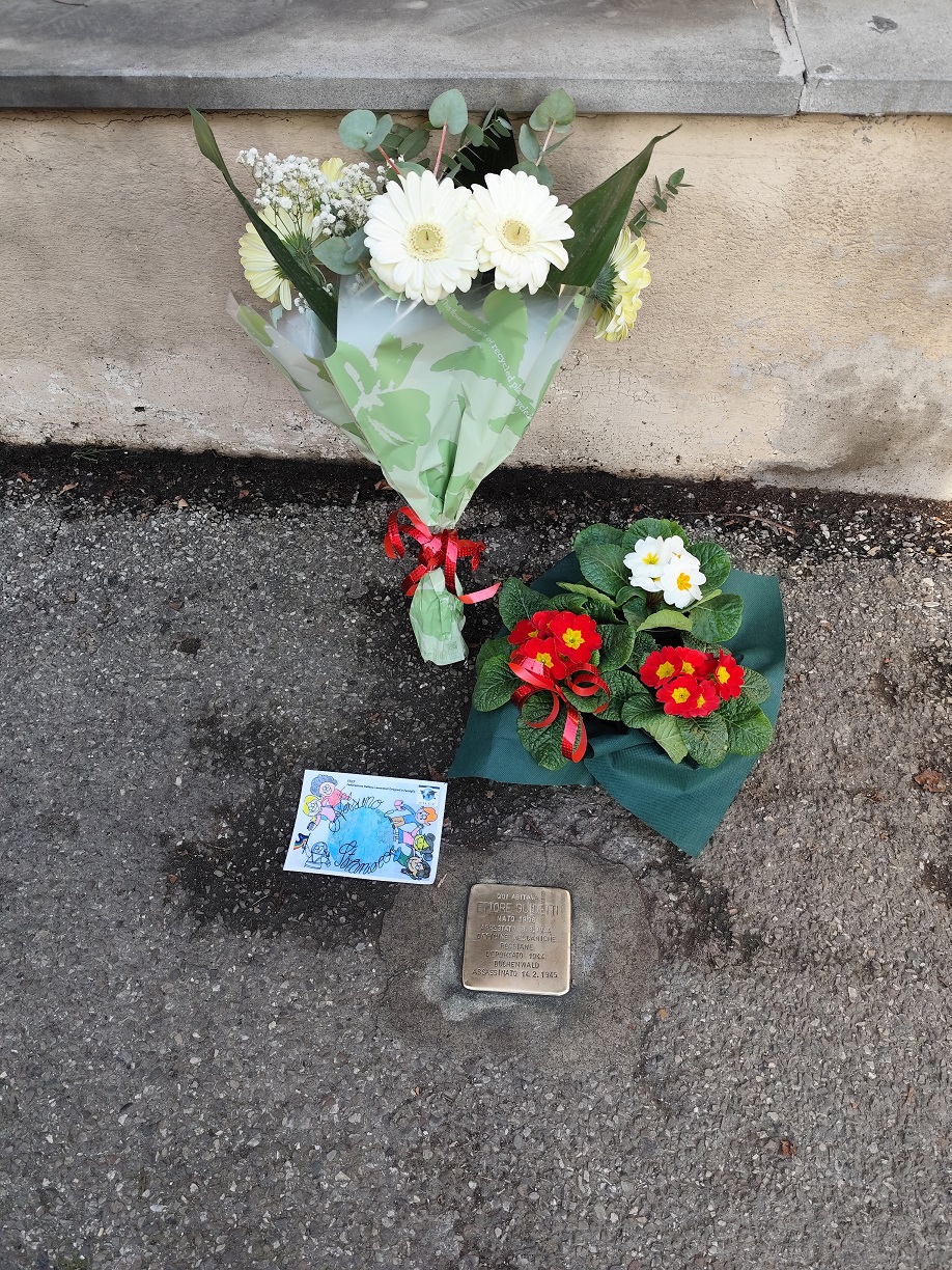 Le due classi hanno “adottato”, anche per gli anni futuri, la Pietra d’Inciampo e durante la cerimonia hanno omaggiato con un fiore e condiviso la lettura della poesia di Primo Levi “Se questo è un uomo”, insieme a riflessioni personali : “Le bombe sparate durante la guerra oltre a spegnere la vita degli uomini, spegnevano i sogni e i desideri di ogni essere umano”, dimostrando una notevole sensibilità verso i sentimenti dell’ingiustizia, della paura e i valori della memoria storica e della speranza.