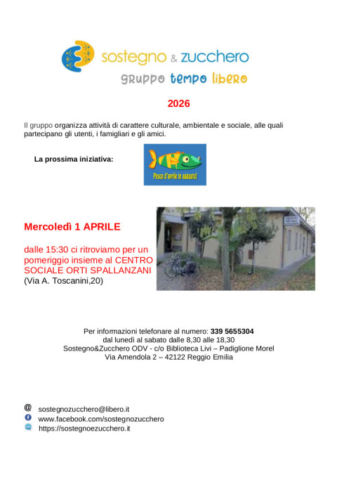 La prossima iniziativa si terrà mercoledì 1 aprile 2026. Dalle 15.30 ci si ritroverà al centro sociale Orti Spallanzani in via Toscanini a Reggio Emilia. E vista la data, ci sarà da stare attenti a scherzi e pesci d’Aprile!
