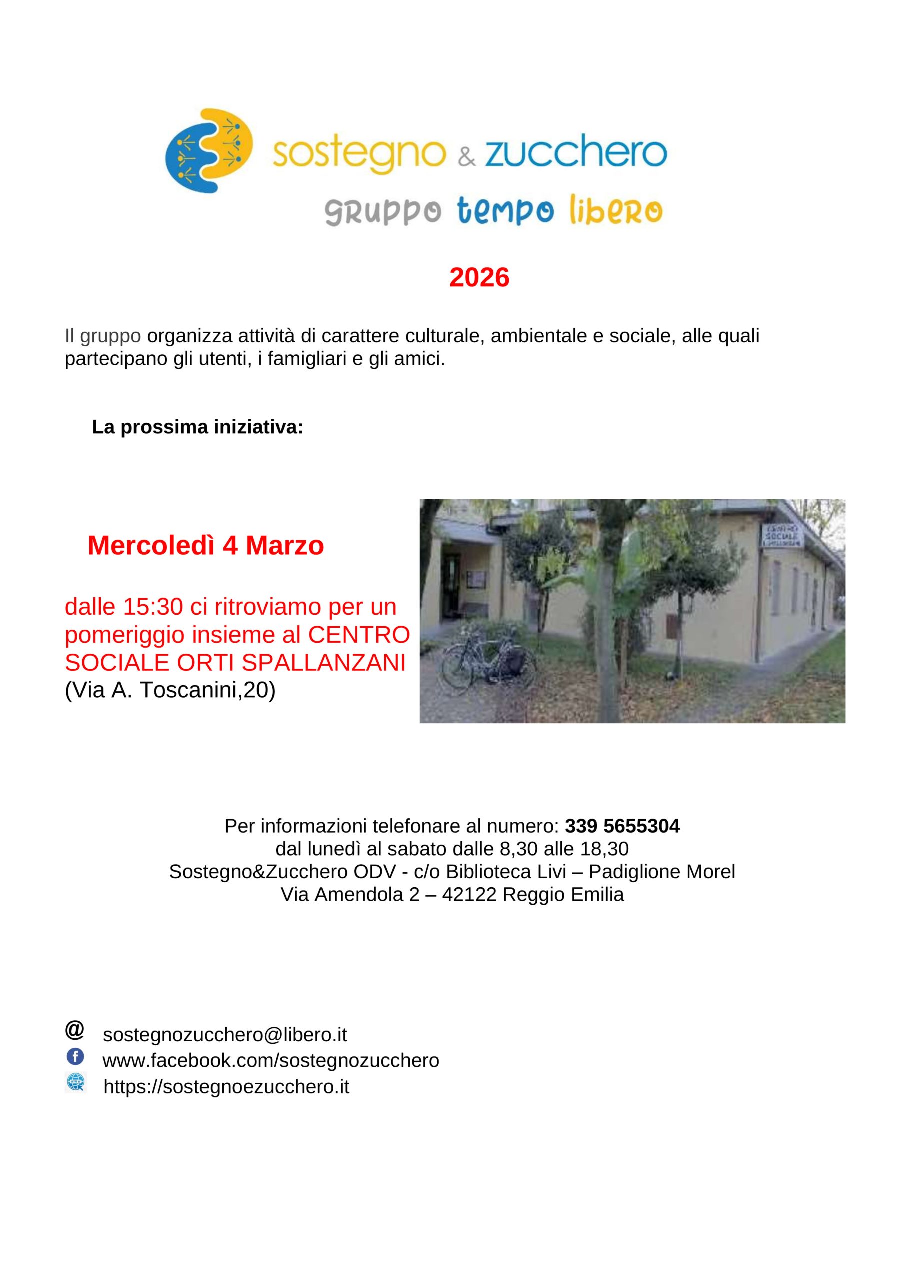 La prossima iniziativa si terrà mercoledì 4 marzo 2026. Dalle 15.30 ci si ritroverà al centro sociale Orti Spallanzani in via Toscanini a Reggio Emilia.