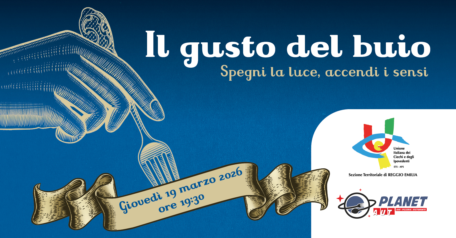 L’Unione Italiana dei Ciechi e degli Ipovedenti ETS – APS Sezione Territoriale di Reggio Emilia, organizza per giovedì 19 marzo 2026, alle ore 19.30, presso il Ristorante Planet-Aut di Casalgrande, “Il Gusto del Buio”, una cena al buio che invita i partecipanti a vivere un’esperienza sensoriale intensa e fuori dall’ordinario.
