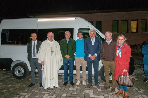 Al termine della messa il vescovo ha benedetto un nuovo pulmino acquistato grazie al contributo di Credem Banca e della Fondazione Pietro Manodori.