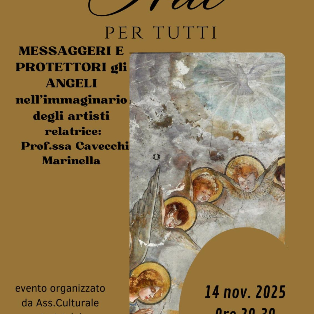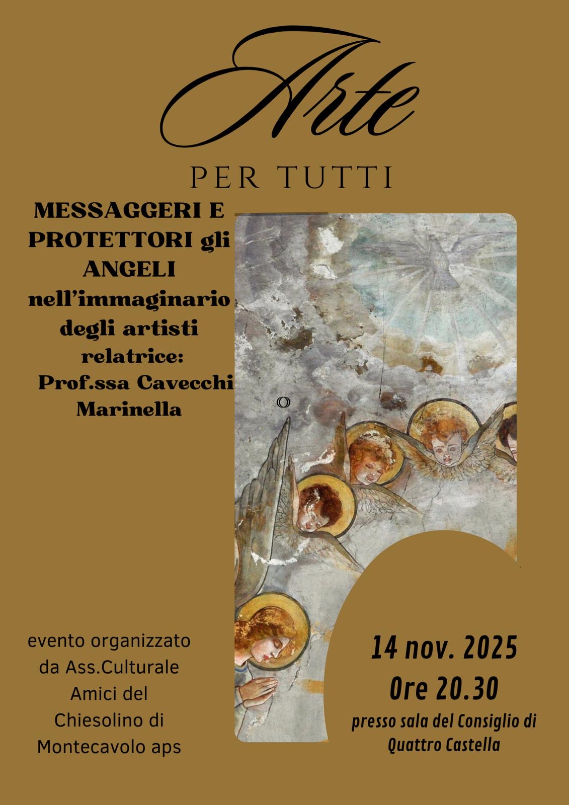 “Messaggeri e protettori: gli angeli nell’immaginario degli artisti”. E’ il titolo dell’iniziativa in programma venerdì 14 novembre, alle 20.30 nella sala consiliare del Comune di Quattro Castella.