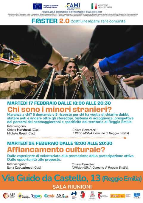 Interverranno Ilaria Capuzzimati di Ciac e Chiar Reverberi dell’Ufficio MSNA (minori stranieri non accompagnati) del Comune di Reggio Emilia.