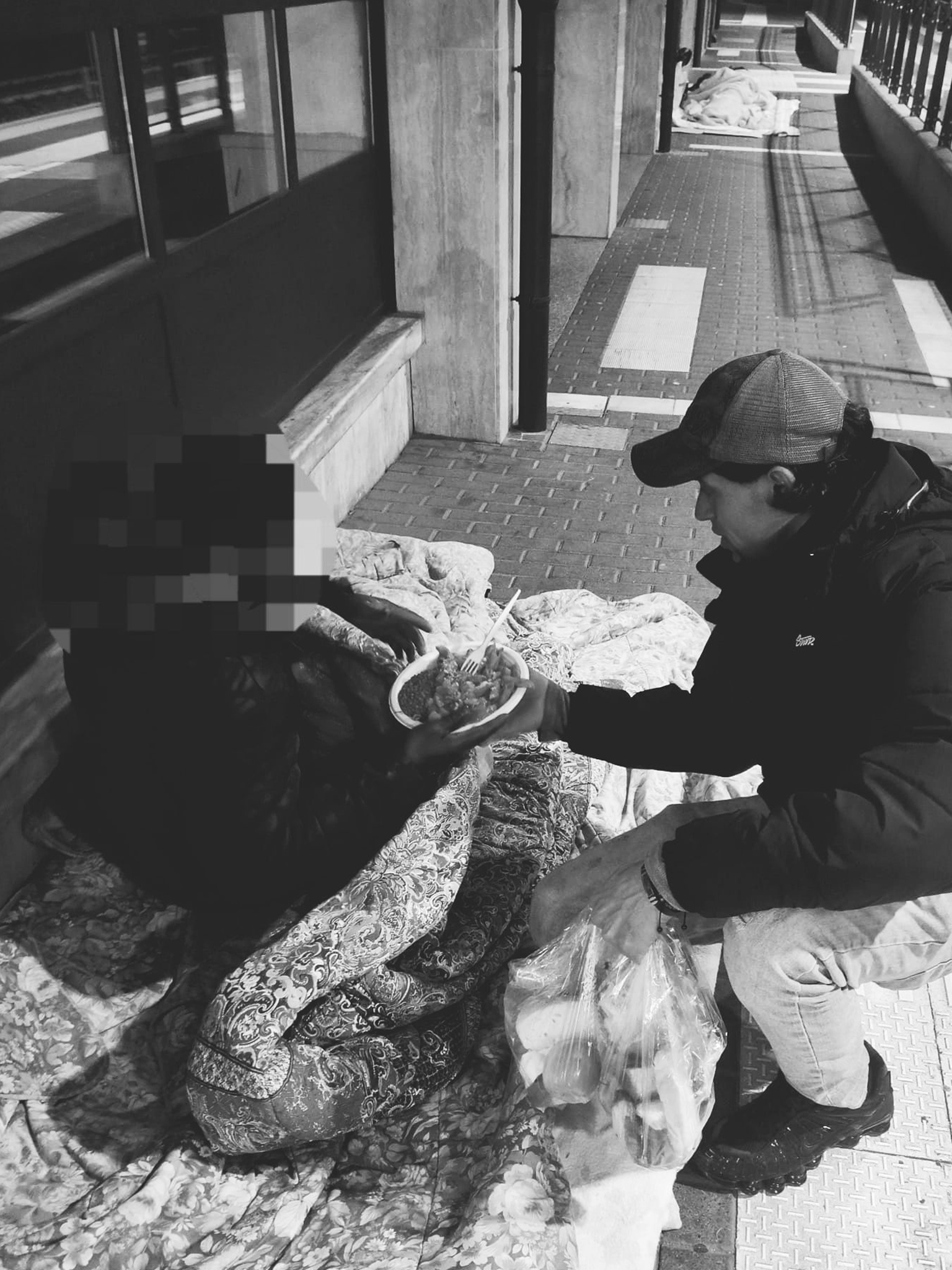 • acquisto di cibo non donabile per i 70–80 pasti distribuiti ogni settimana in strada;
