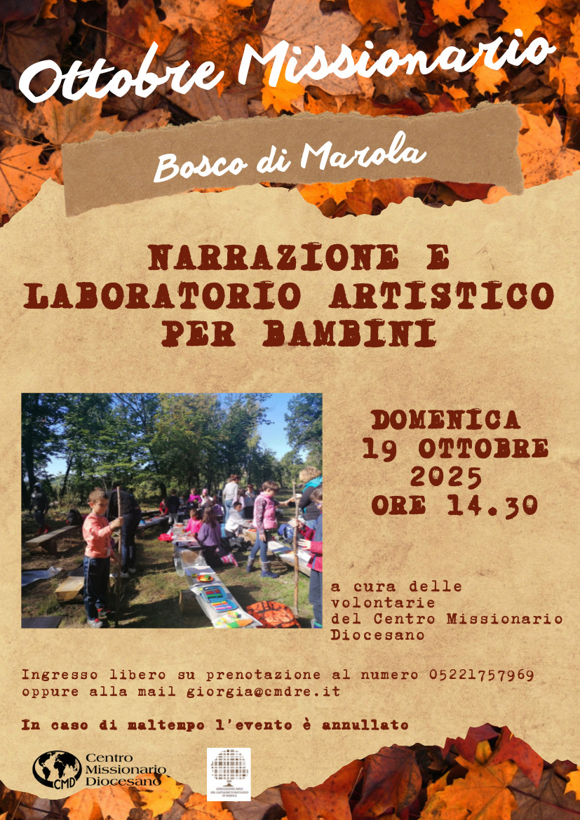 Inoltre, domenica 19 ottobre verrà proposto un laboratorio musicale e artistico per bambini, a ingresso libero. L’appuntamento è alle 14.30 all’ingresso del bosco. In caso di maltempo, l’evento è annullato. Per informazioni e prenotazioni, contattare Giorgia al numero 0522 1757969 o scrivere alla mail giorgia@cddre.it.
