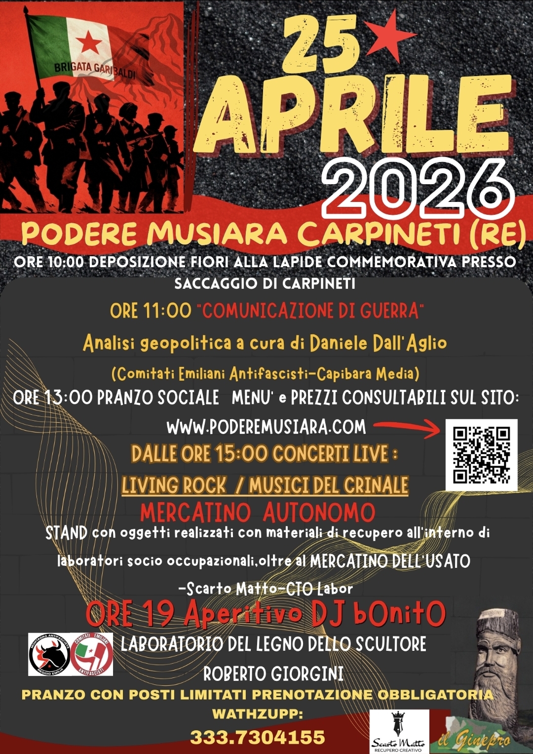 L’appuntamento è per sabato 25 nella bella cornice montana del Podere Musiara di Carpineti, per un momento pensato per unire la memoria storica della Resistenza della montagna reggiana agli scenari geopolitici odierni, mettendo al centro i valori della Costituzione e cercando di attualizzarne pienamente i principi nel contesto storico attuale.