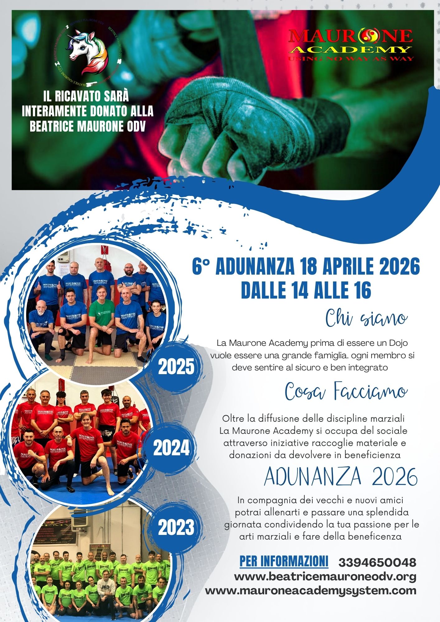 Al centro di questo impegno c’è anche il ruolo del padre, Stefano Maurone, insegnante di arti marziali, che ha scelto di mettere la propria professione al servizio della causa: proprio da questa idea nasce l’Adunanza, un evento che unisce il suo mondo – quello dello sport e della formazione – alla solidarietà, trasformando una lezione collettiva in un gesto concreto di aiuto.
