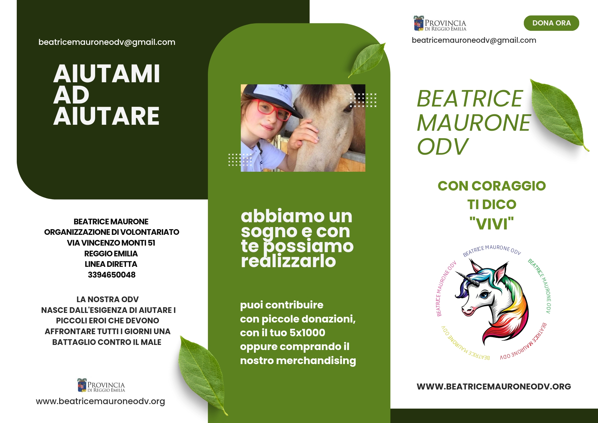 La Beatrice Maurone ODV nasce nel 2018 dal desiderio dei genitori di Beatrice, una ragazza di Reggio Emilia scomparsa a soli 12 anni dopo un lungo percorso di cure, di trasformare un’esperienza personale in un aiuto concreto per gli altri.