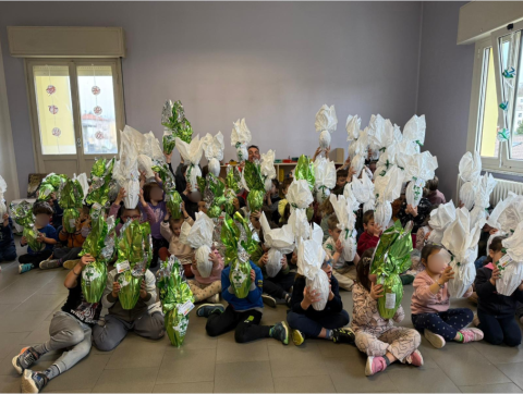 Da anni l'imprenditore sostiene la pubblica assistenza. Le uova sono state donate ai bimbi degli asili locali.