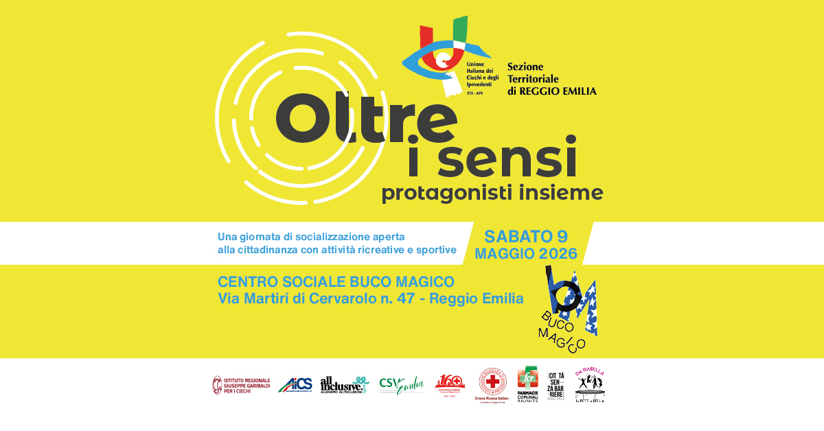 Si terrà sabato 9 maggio 2026, al centro sociale Buco Magico di Reggio Emilia in via Martiri di Cervarolo 47, l’iniziativa “Oltre i sensi… protagonisti insieme”, una giornata di socializzazione aperta alla cittadinanza con attività ricreative e sportive finalizzate alla promozione dell’inclusione e della partecipazione attiva.