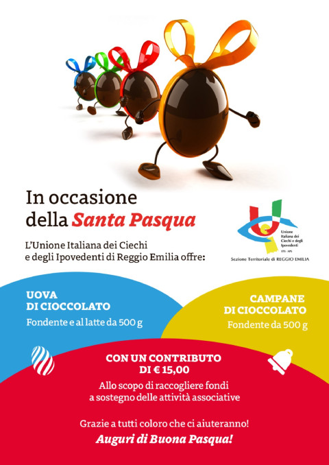 Torna anche in occasione della Pasqua 2026, la campagna di distribuzione delle uova e delle campane di cioccolato pasquali distribuiti dalla sezione reggiana dell’UICI – Unione Ciechi e Ipovedenti.