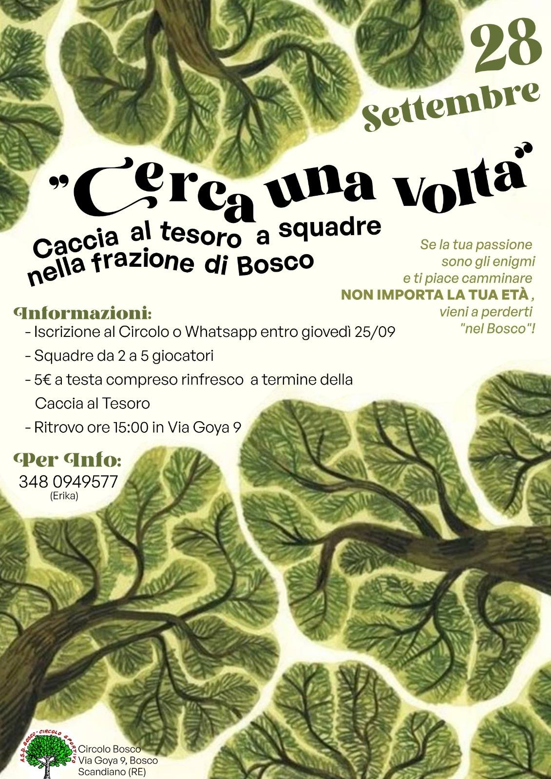 Tra un pranzo con tortelli e una caccia al tesoro, la domenica 28 settembre del circolo Bosco di Scandiano sarà un momento intenso e adatto a tutte le famiglie.