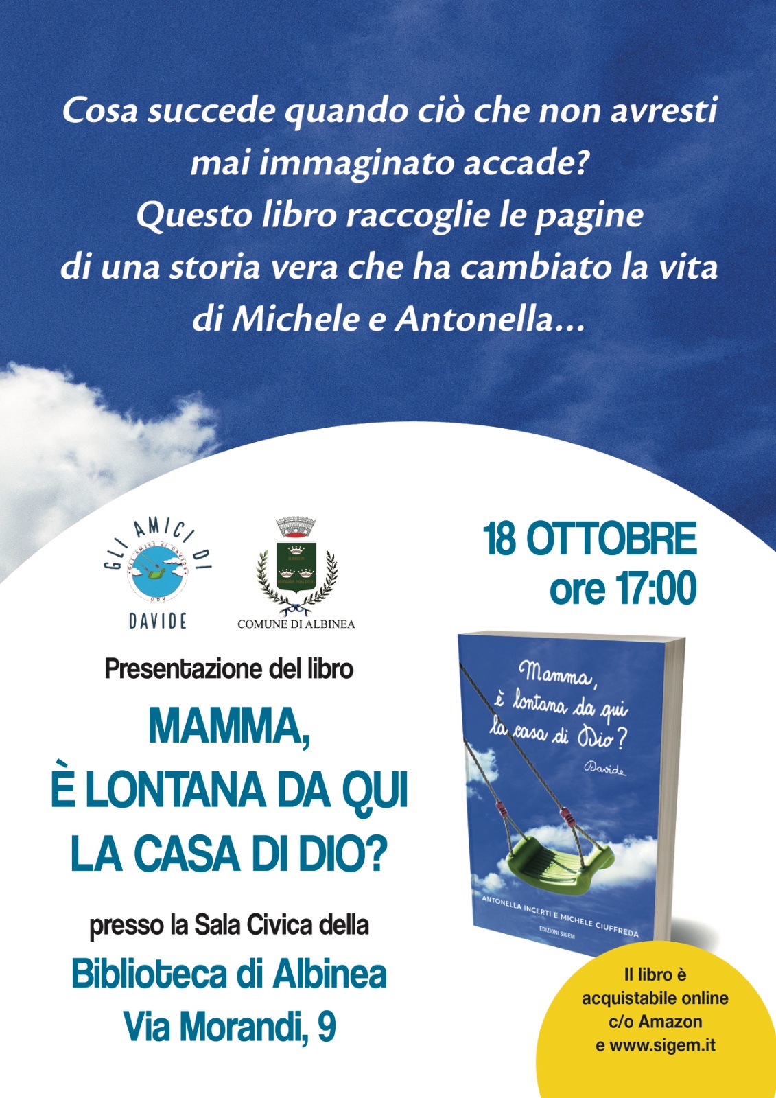 Cosa succede quando ciò che non avresti mai immaginato accade? Prova a dare risposte a qualcosa che è difficile anche solo da immaginare e non da affrontare, ovvero la morte di un figlio, il libro “Mamma, è lontana da qui la casa di Dio? Davide” al centro della presentazione letteraria in programma sabato 18 ottobre a Albinea.