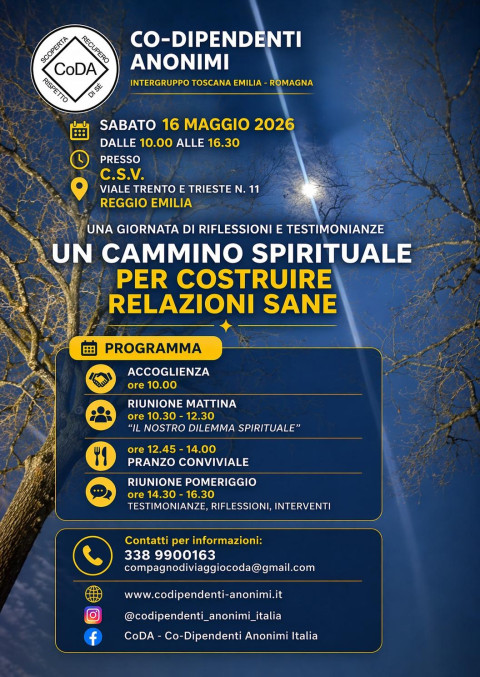 “Un cammino spirituale per costruire relazioni sane” con l’intergruppo Emilia-Romagna – Toscana di CoDa, l’associazione Codipendenti Anonimi