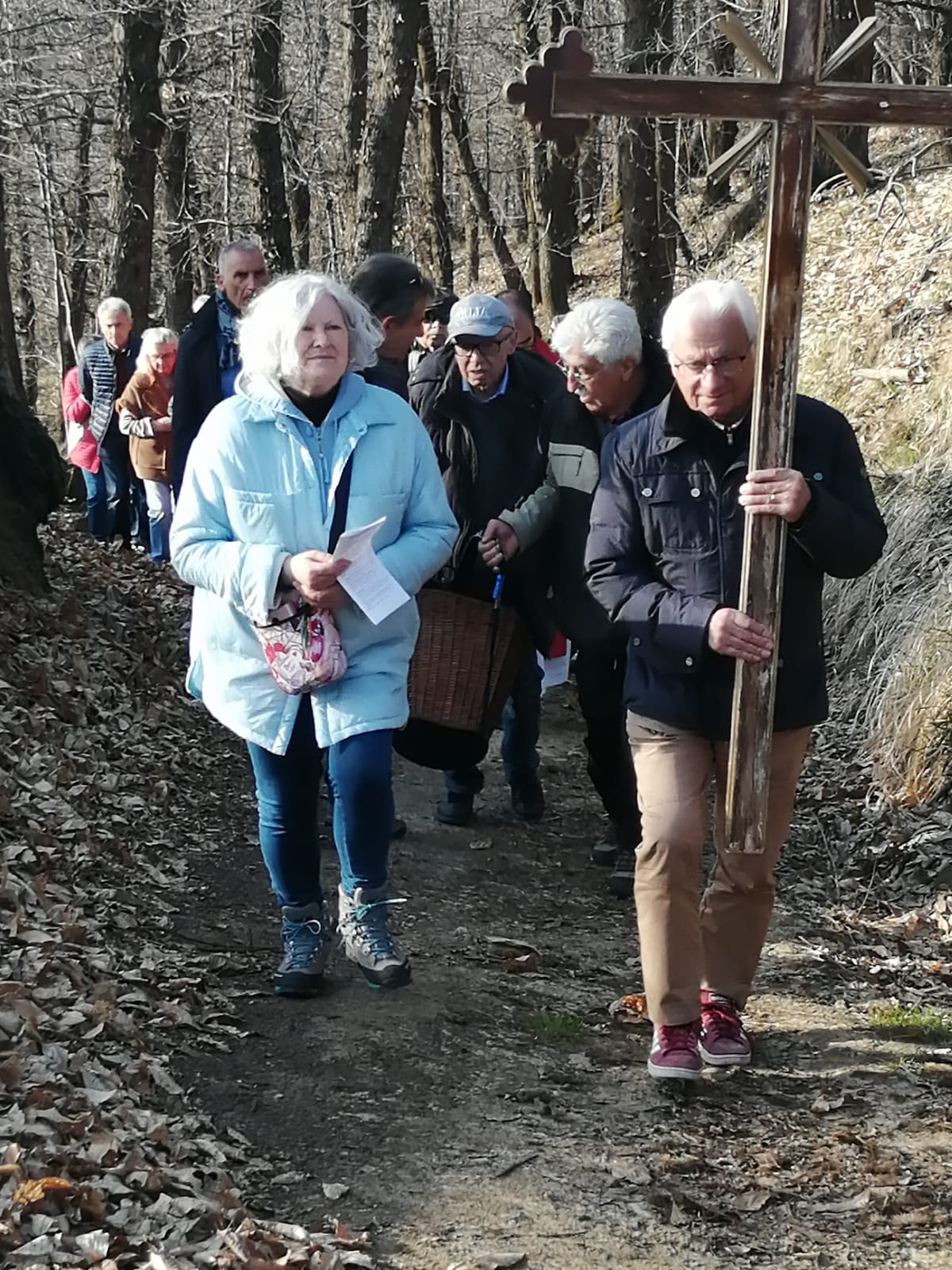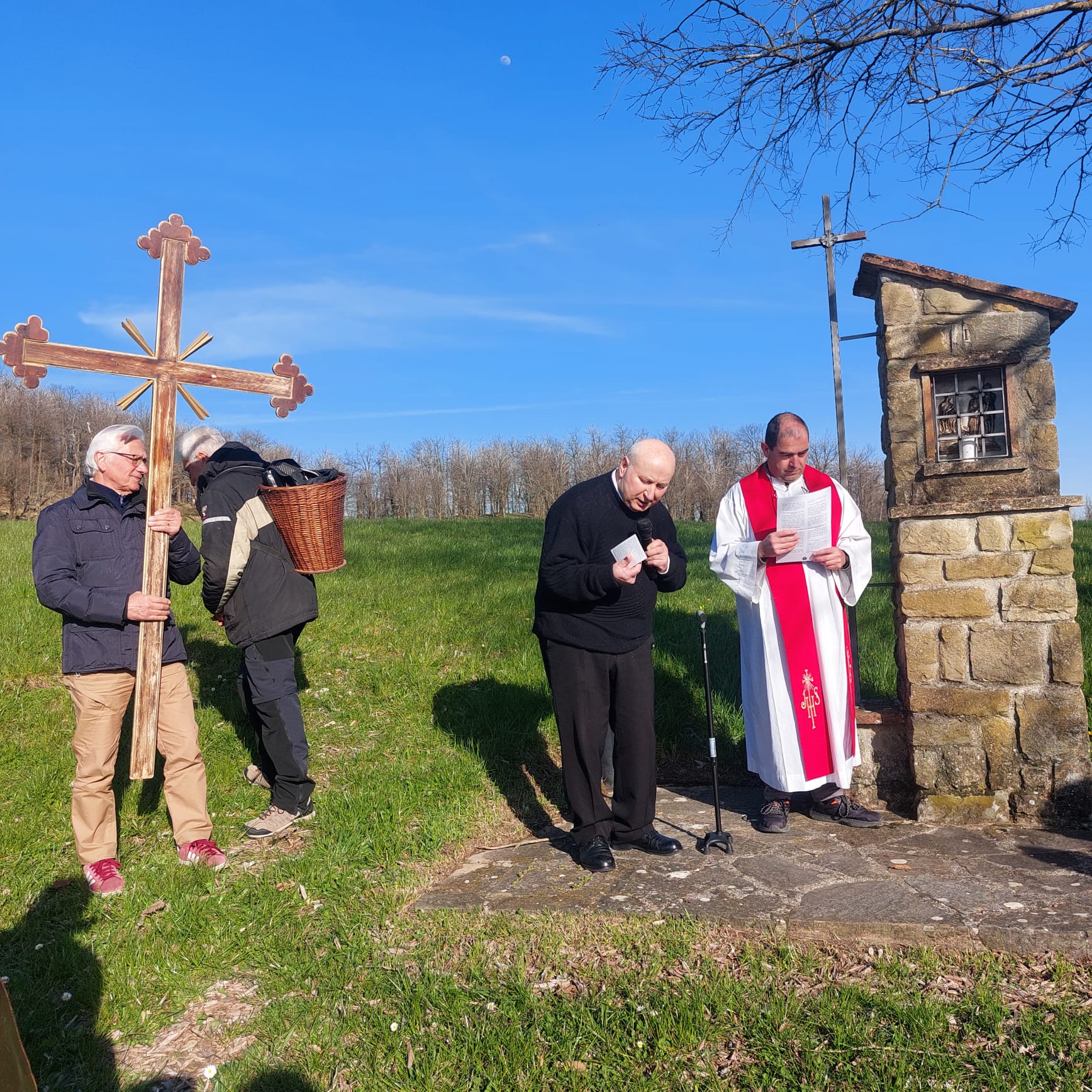 A seguire, il saluto di monsignor Guiscardo Mercati, parroco di Carpineti, e l’avvio della Via Crucis, guidata nelle sue varie tappe da don Giancarlo Denti. Il sacerdote ha accompagnato con diverse meditazioni lo snodarsi delle quattordici stazioni del cammino della Croce, fin sulla cima del monte che domina la vallata tra Marola, Pantano e Casina. Le stazioni o “edicole” sono il frutto di donazioni avvenute nel tempo da parte di persone e famiglie di Marola, i cui nomi sono ancora leggibili sui pilastrini di sasso, a memoria della passata devozione.