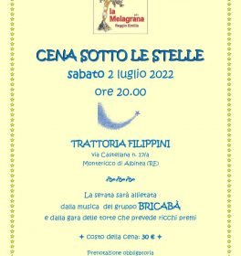 Seguita da un concerto, si terrà sabato 2 luglio alle 20 alla trattoria Filippini a Montericco di Albinea.